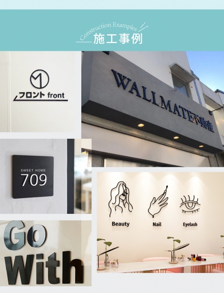取り付け:両面テープ接着済み、文字サイズにより強度や安全面からご自身で接着剤をご購入し併用することをおすすめします。