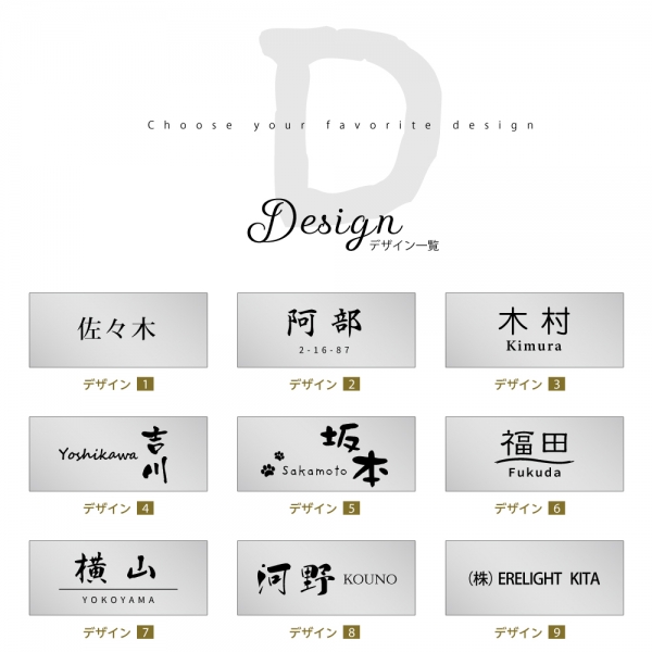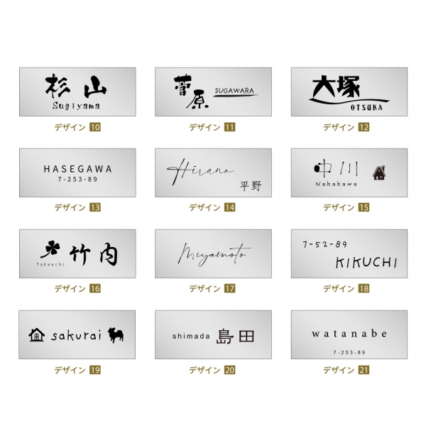 ●「漢字+英字」のデザインをご選択いただいても「漢字」しかご記入いただいていない場合は、ご記入いただいている内容のみで作成いたします。