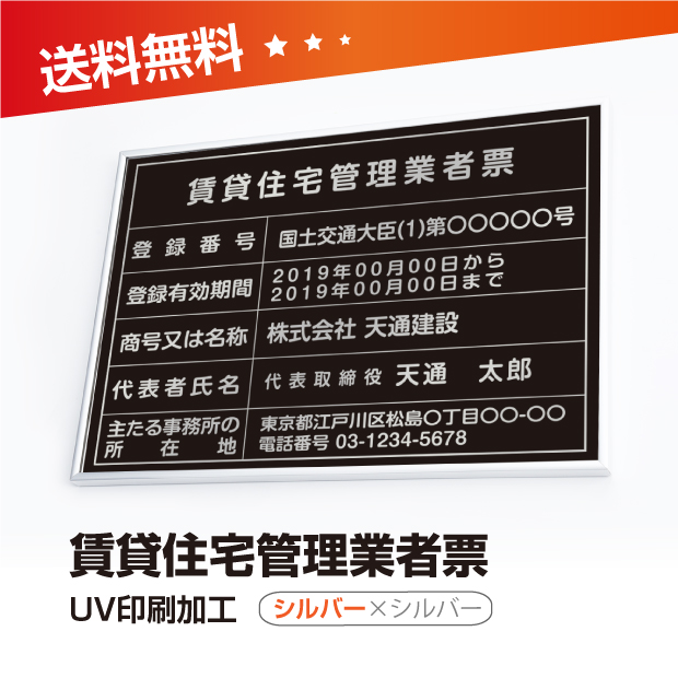 賃貸住宅管理業者票 W50cmxH35cm 選べる4書体 4枠 pdzz-sil-sil-blk