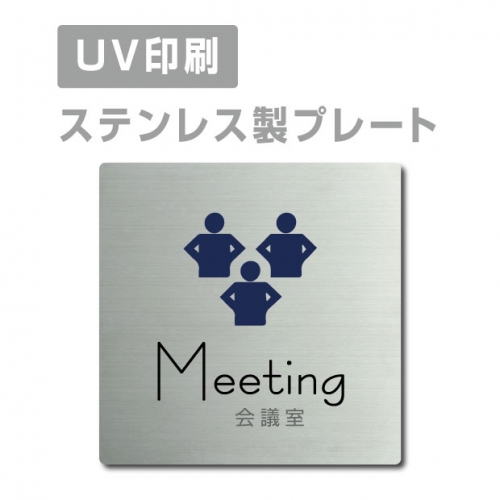 【会議室 Meeting プレート(正方形)】ステンレスドアプレート strs-prt-07