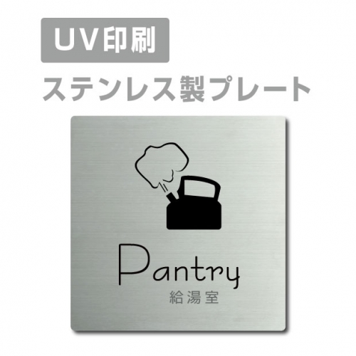 ■送料無料メール便対応〈ステンレス製〉【両面テープ付】【給湯室Pantryプレート(正方形)】ステンレスドアプレートドアプレートW150mm×H150mmプレート看板