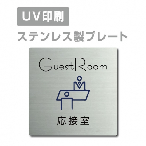 ■送料無料 メール便対応〈ステンレス製〉【両面テープ付】【応接室 GuestRoom プレート(正方形)】ステンレスドアプレートドアプレート W150mm×H150mm プレート看板