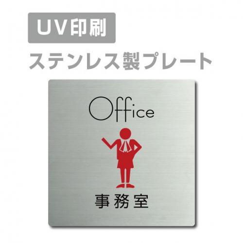 【事務室 Office プレート(正方形)】ステンレスドアプレート strs-prt-36