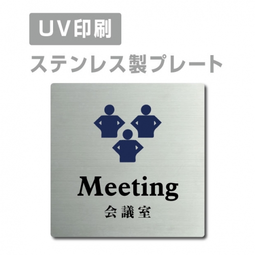 ■送料無料 メール便対応〈ステンレス製〉【両面テープ付】【会議室 Meeting プレート(正方形)】ステンレスドアプレートドアプレート W150mm×H150mm プレート看板