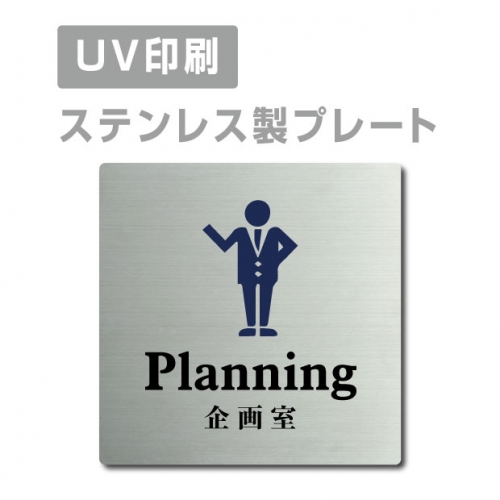 ■送料無料 メール便対応〈ステンレス製〉【両面テープ付】【企画室 Planning プレート(正方形)】ステンレスドアプレートドアプレート W150mm×H150mm プレート看板