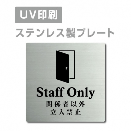 ■送料無料 メール便対応〈ステンレス製〉【両面テープ付】【関係者以外立入禁止 Staff Only プレート(正方形)】ステンレスドアプレートドアプレート W150mm×H150mm プレート看板