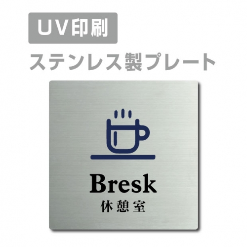 九州・北海道・沖縄・離島など地域への配送料は別途かかります。 ■送料無料 メール便対応〈ステンレス製〉【両面テープ付】【休憩室 Bresk プレート(正方形)】ステンレスドアプレートドアプレート W150mm×H150mm プレート看板