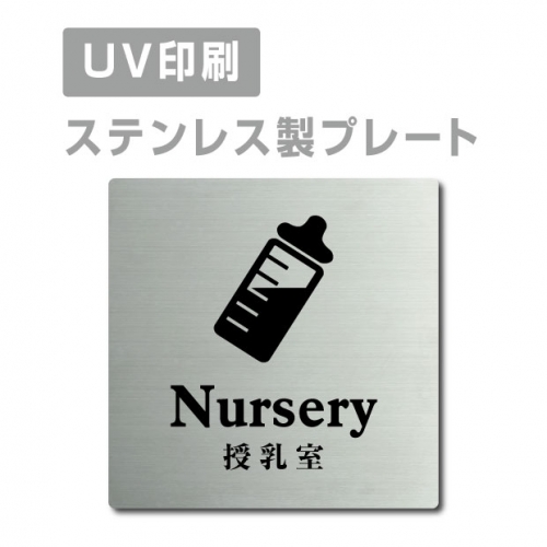 ■送料無料 メール便対応〈ステンレス製〉【両面テープ付】【授乳室 Nursery プレート(正方形)】ステンレスドアプレートドアプレート W150mm×H150mm プレート看板