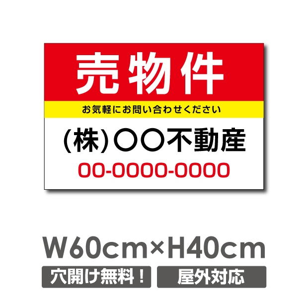 【送料無料】プレート看板「売物件」600mm×400mm アルミ複合板 表示板不動産向け募集看板 〈看板〉入居者募集/テナント募集看板です。不動産/駐車場/貸店舗/空きアパート/賃貸住宅などの契約者募集時に!フェンスに取り付けOK!遠くからでも良く目立つデザインです。
