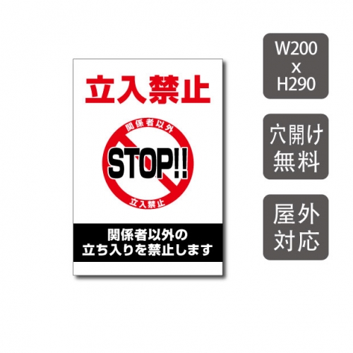 プレート看板 「立入禁止 STOP!!」 W200xH290mm warning-106