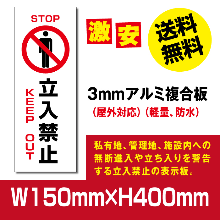 プレート看板 「立入禁止」 W150mmxH400mm アルミ複合板(3mm) warning-119