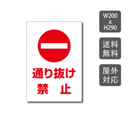 プレート看板 「通り抜け禁止」 W200xH290mm warning-121