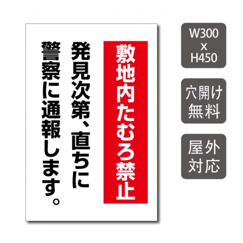 プレート看板 「敷地内たむろ禁止」 W300xH450mm warning-139